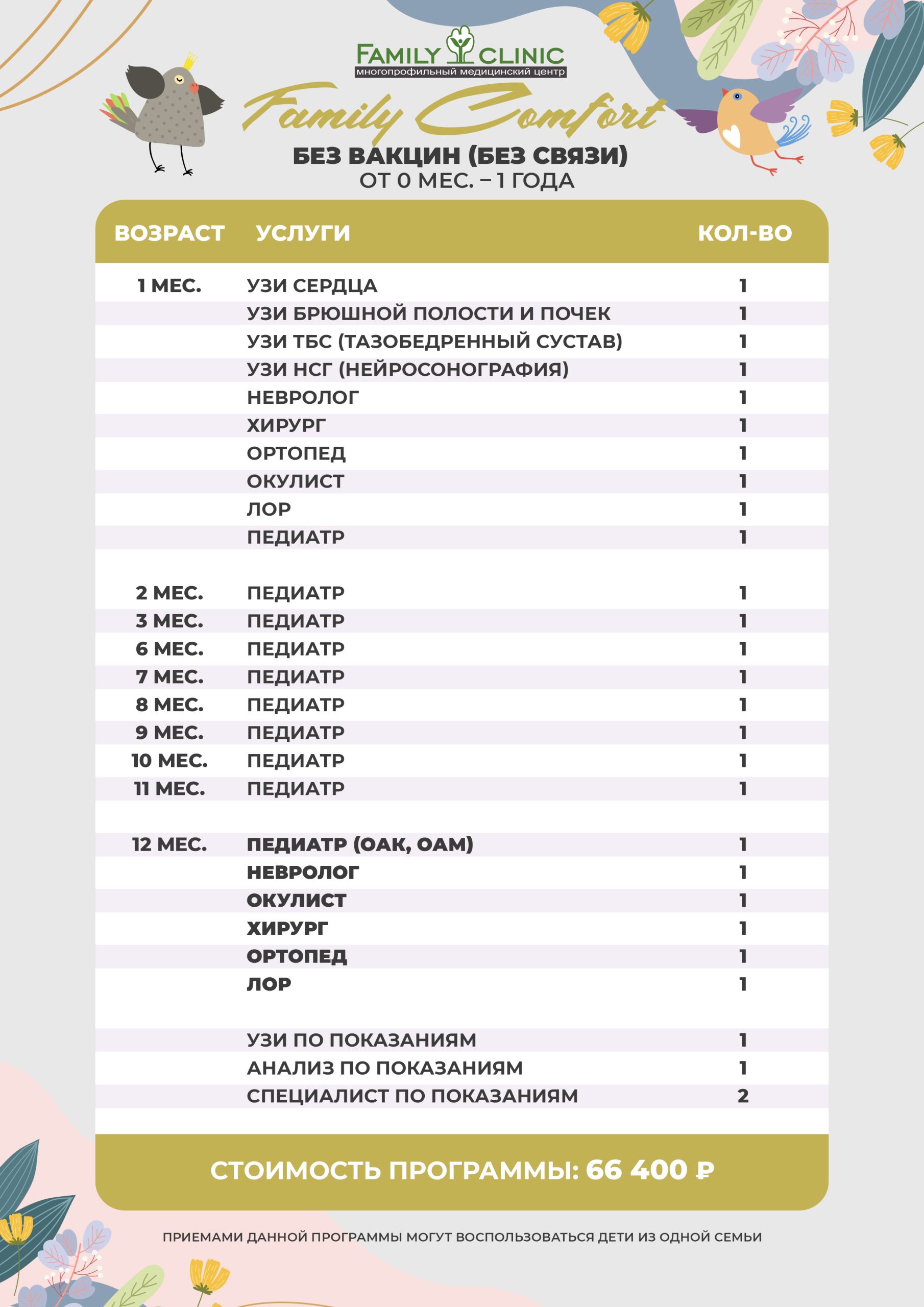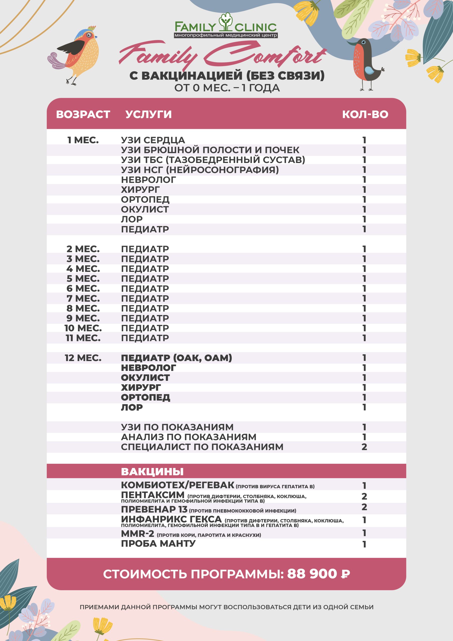 «Family Comfort» c вакцинацией от 0 до 1 года: