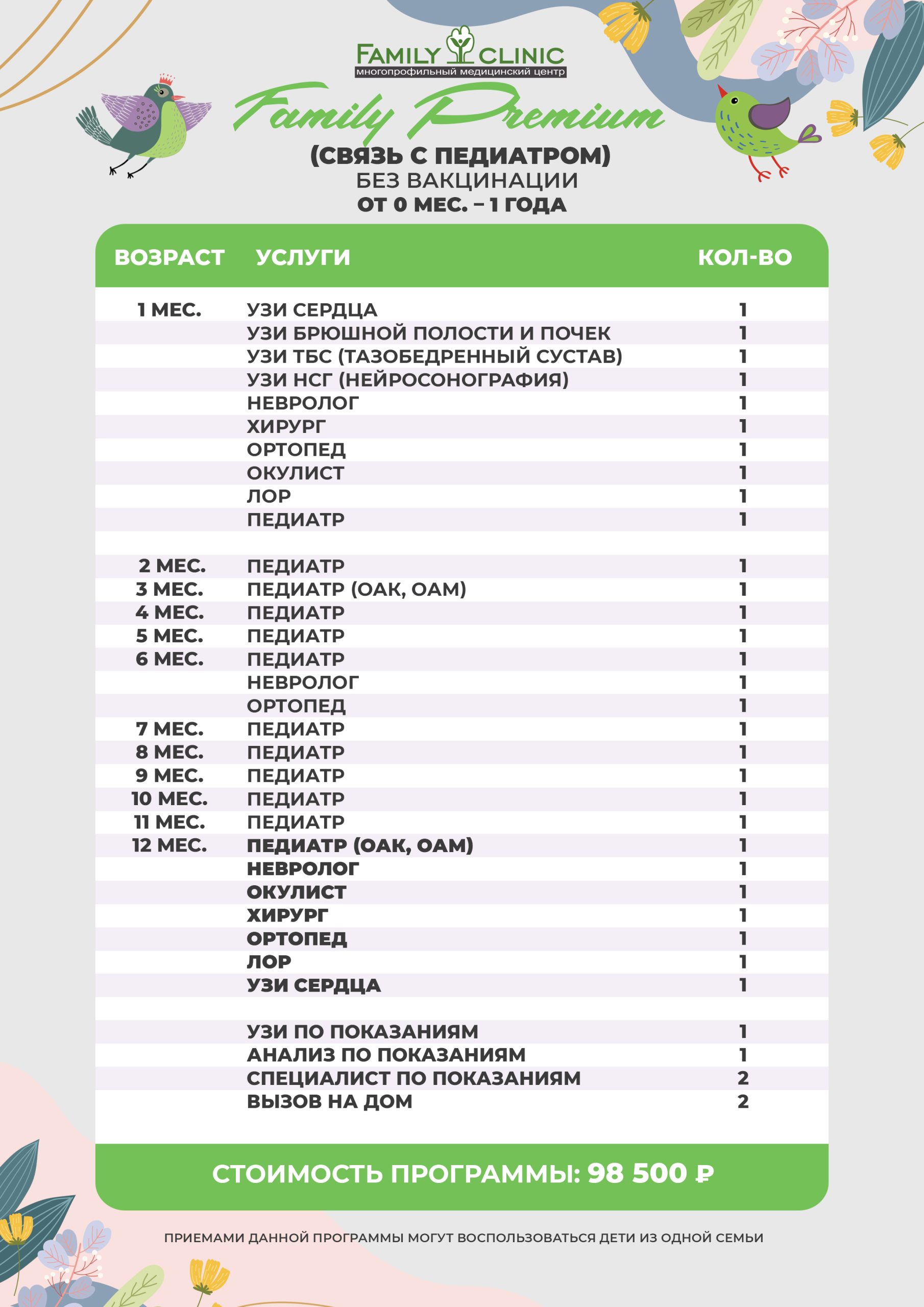 «Family Premium» без вакцин (связь с педиатром) от 0 до 1 года: