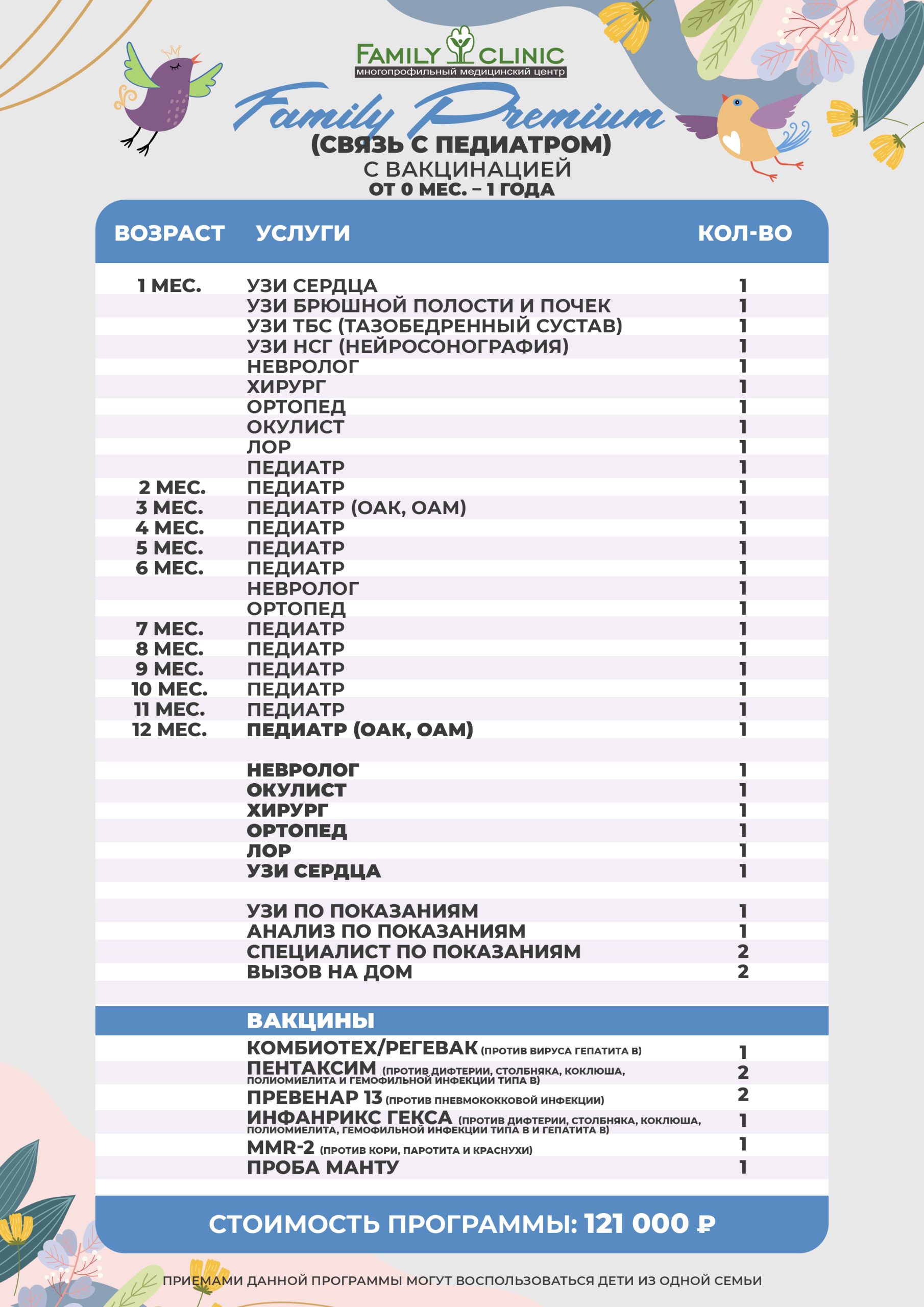 «Family Premium» с вакцинацией (связь с педиатром) от 0 до 1 года: